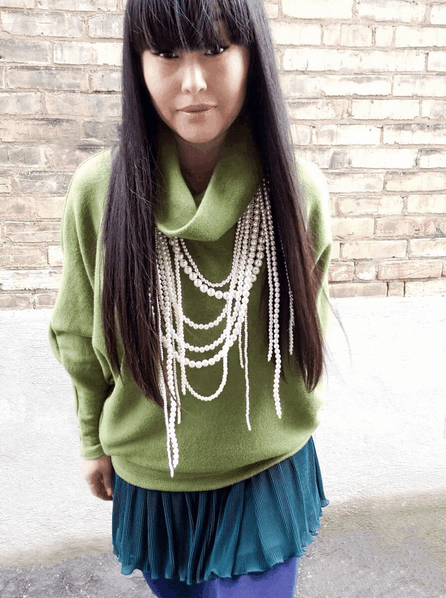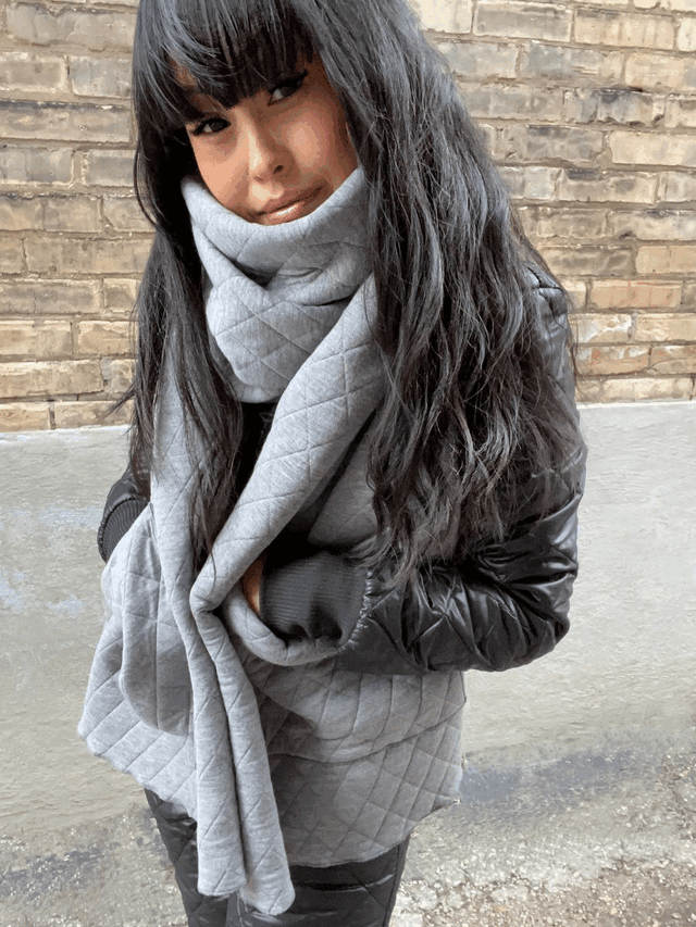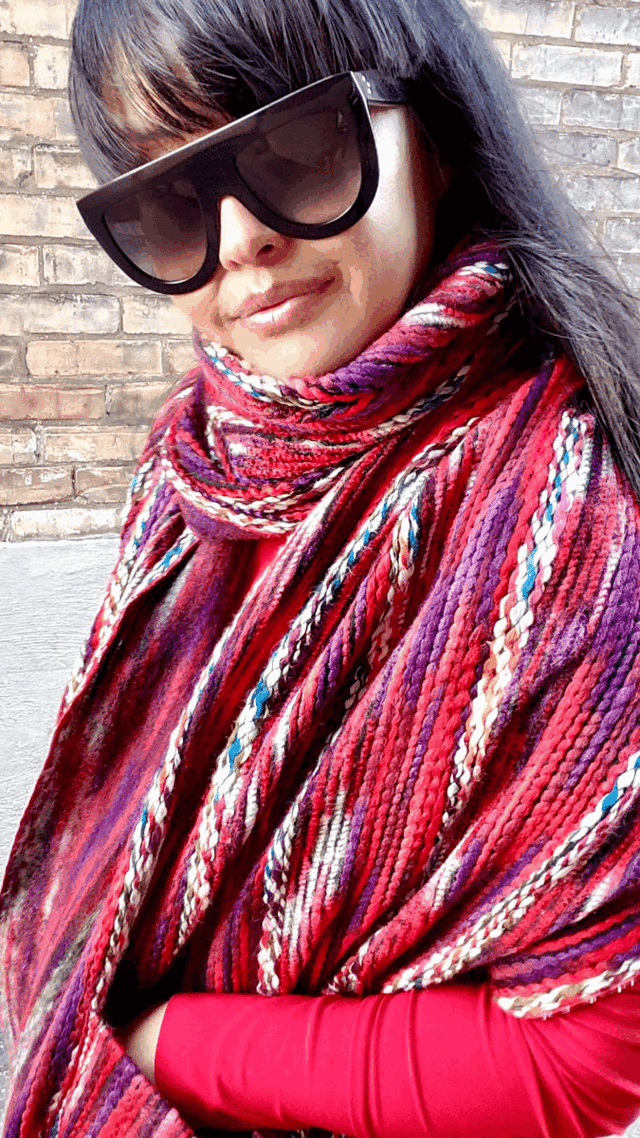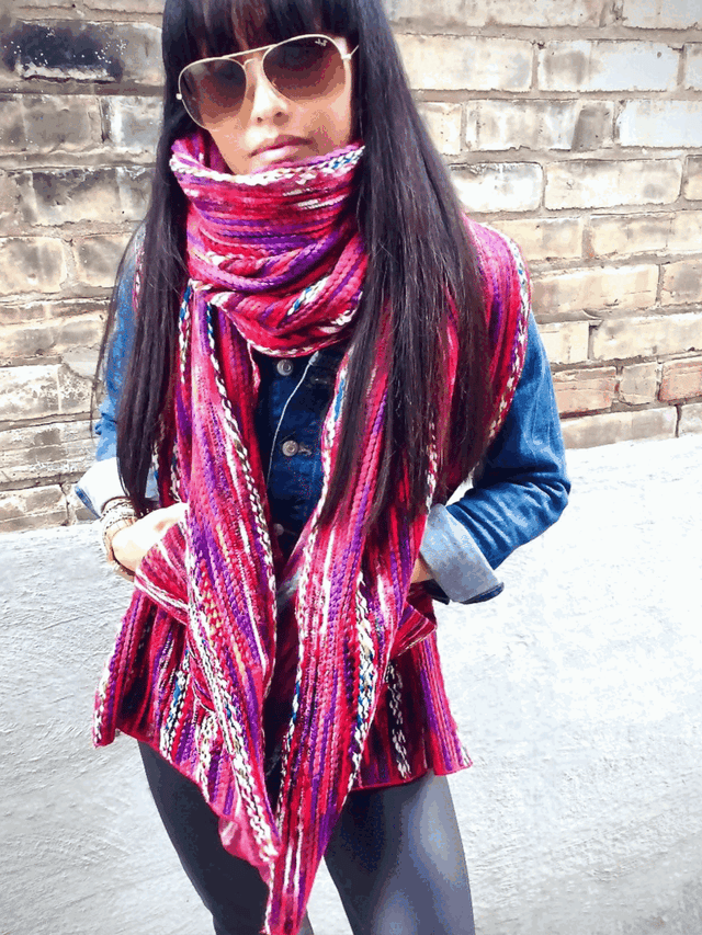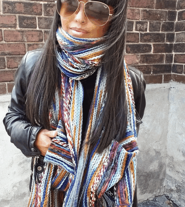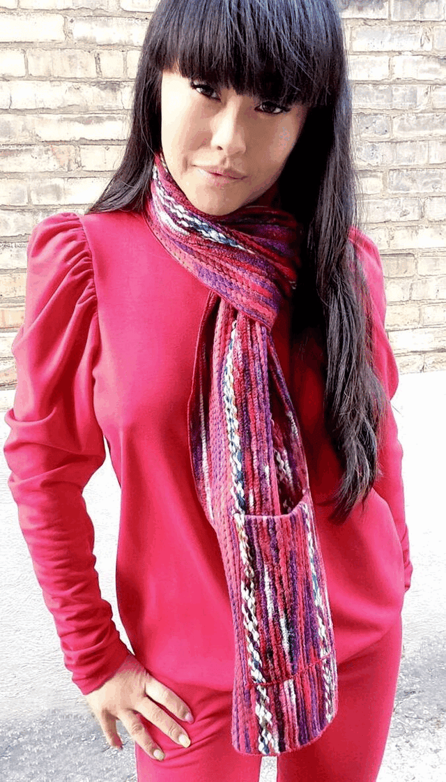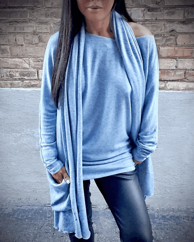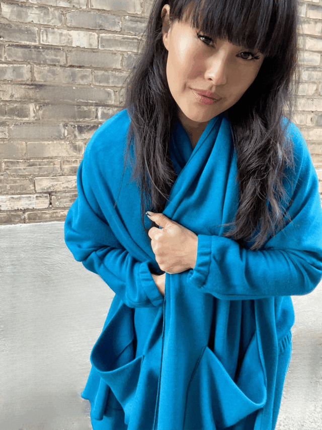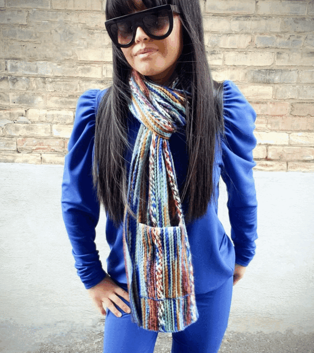 Famous Anne Hung collectible ultra soft sweater knit pocket scarf in a SPECIAL tealblue.