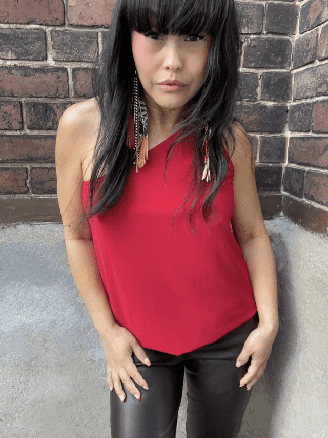 A 1-shoulder top with a flirty ruffle detail and a slimming hem embodies sexiness and femininity.