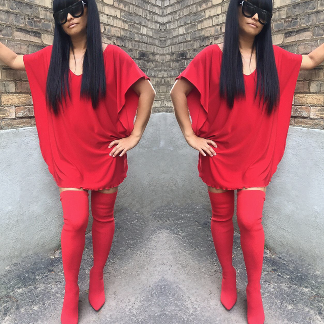 What is your preference, a slim jersey skirt or a fitted slim pleather skirt? Both options are equally appealing.