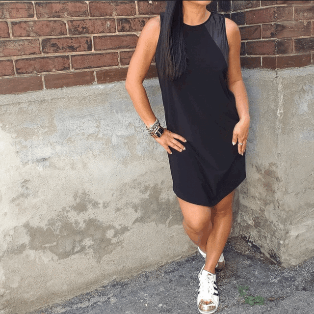 Basic loose coop neck jersey tank top paired with a flirty jersey short.