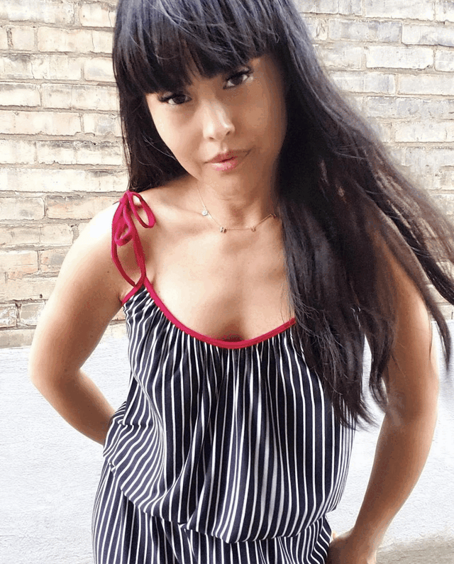 Upgrade your tank dress with classic pinstripes. Style with a blazer and ribbon necklace.