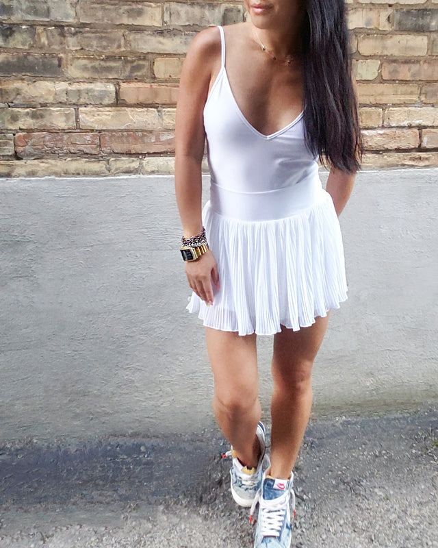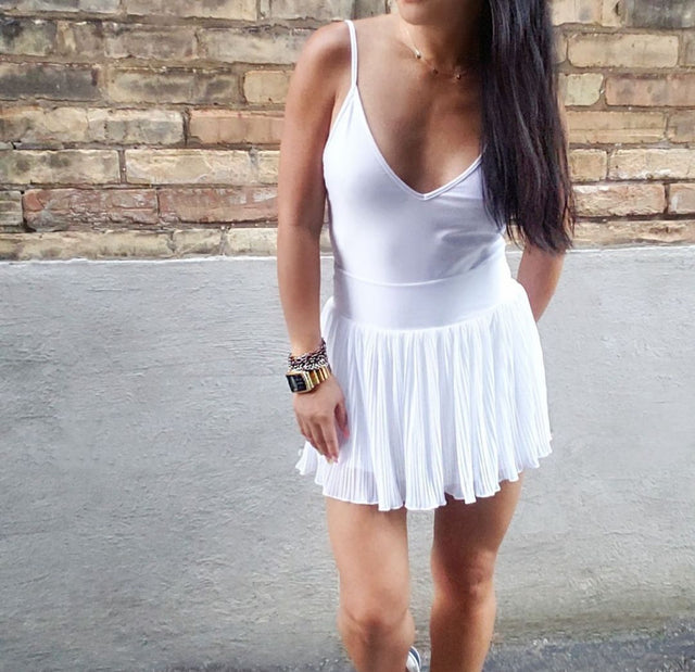 Searching for a unique, bold, and attractive cycling gear option? This body suit / 1 piece swimsuit and black pleated skirt is a perfect choice.