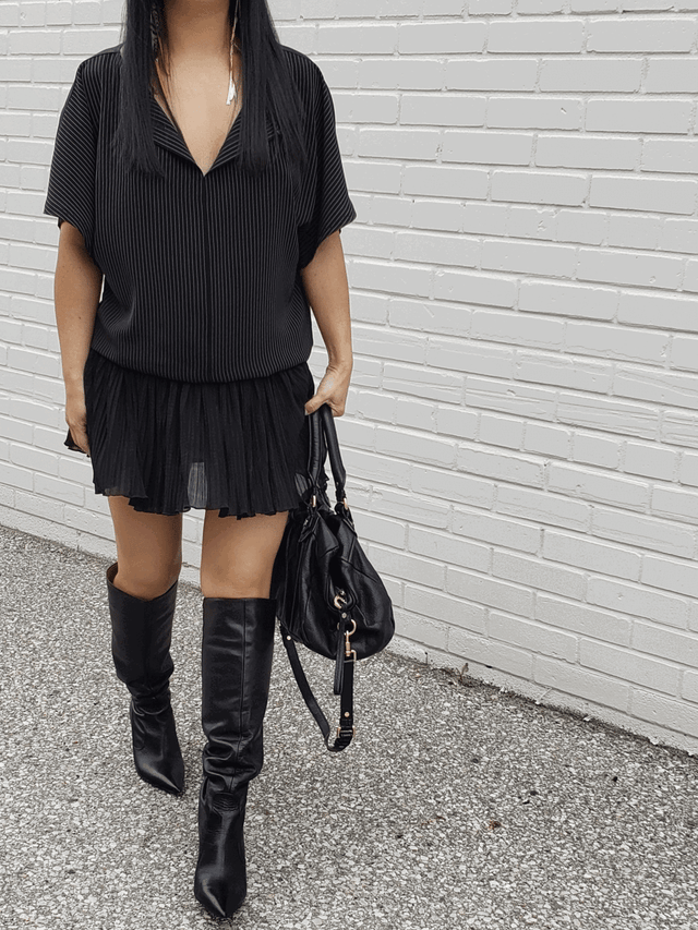 STYLE#105751F-FBLKPLEA (TOP) / STYLE#515AC-BLKPLEA (SKIRT)