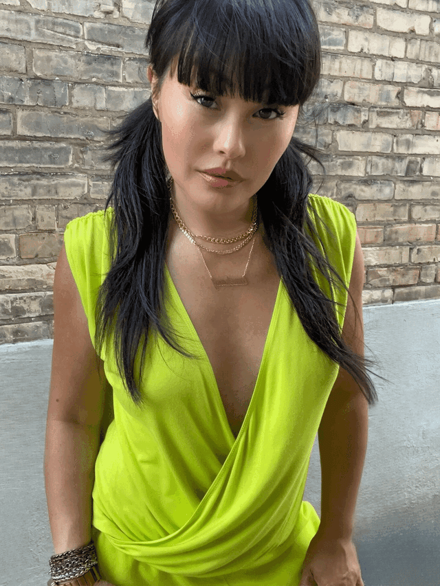 Casual appears sophisticated thanks to this ultra soft neon bamboo top matched with chic loose neon joggers.